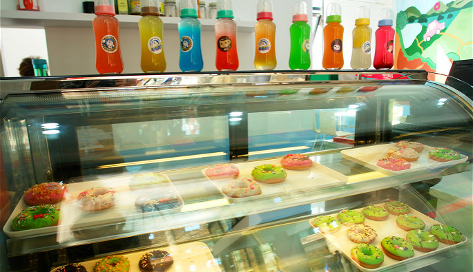 甜甜圈是一种用面粉、砂糖、奶油和鸡蛋混合制成的甜食,加入芝麻、瓜子仁,中间包入奶油、蛋浆(卡士达),是一款挡不住的美味。泡芙吃起来外热内冷,外酥内滑,口感极佳。在玩累了之后和家人朋友一起品尝香甜柔滑的甜甜圈,心情也瞬间变得五彩缤纷起来!