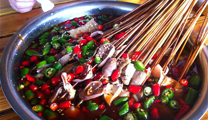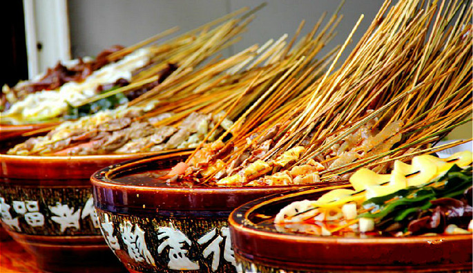 四川钵钵鸡是以陶器钵盛放配以麻辣为主的佐料,加上多种调料的去骨鸡片拌和而成。有皮脆肉嫩,麻辣鲜香,甜咸适中的特色,温中益气,补精添髓,补虚益智。