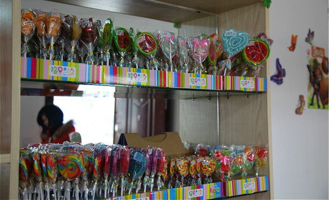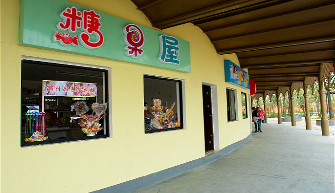 糖果屋是小朋友们的最爱。五彩斑斓的糖果,颜色绚丽,散发着水果的甜香,举在手里像一个个旋转的小风车。棒棒糖、彩虹糖、泡泡糖、牛皮糖、棉花糖……酸酸甜甜,这就是童年的味道、快乐的味道!位于猛兽剧场后面,临近泡球战城,聪明的小朋友们,你找到糖果屋了吗?