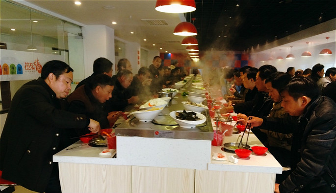 筷乐转时尚涮涮锅位于柏乐大酒店金源楼二楼,用餐环境舒适,且服务贴心。主要经营新式火锅,“一人一锅”——每个顾客一个火锅,再也不用担心众口难调,一个人可以开心独享,一群人也能快乐分享。将各种食材放在不同容器中,再借助运输带将食材展现在顾客面前,如此便可自由选择自己喜欢的食材。拥有上百种火锅涮料,让您食欲大开。且价格十分实惠,让您满意而归。
